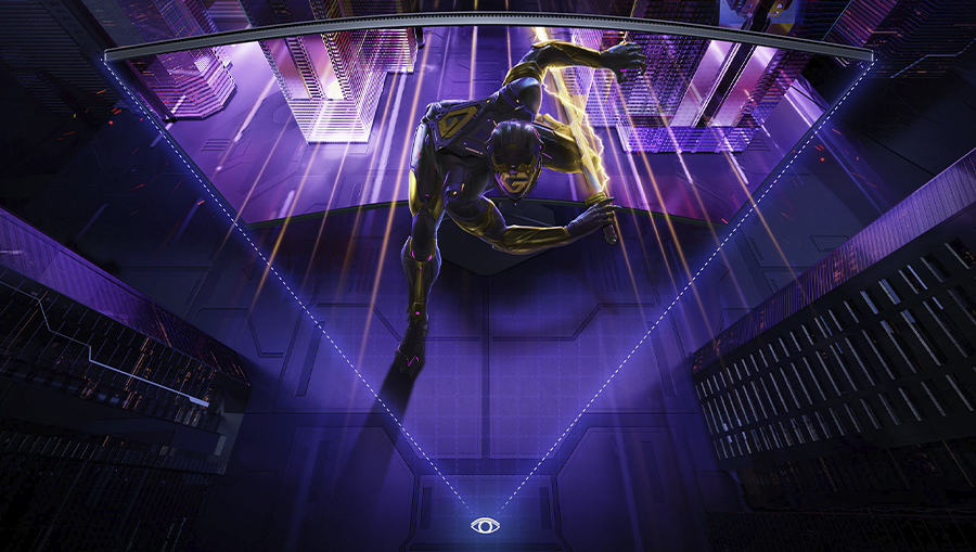 Окажитесь в центре событий с монитором, который словно окружает вас со всех сторон. Такой эффект создается благодаря плавно изогнутому дисплею с радиусом кривизны 1500R, которая повторяет форму человеческого глаза. Изогнутый дизайн обеспечивает постоянное расстояние между глазами и каждой частью экрана, гарантируя реалистичное и захватывающее визуальное восприятие, а также более эргономичный просмотр.