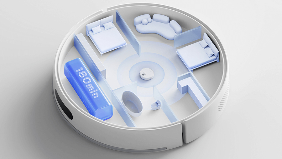 Вместительный аккумулятор обеспечивает до 180 минут непрерывной уборки. Этого достаточно, чтобы идеально вычистить даже большую квартиру или дом на одном заряде. Просто задайте расписание, и робот будет поддерживать чистоту самостоятельно.