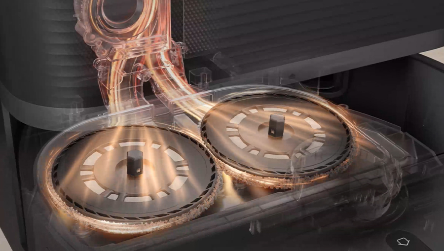 Базовая станция — это настоящая прачечная для робота. Насадки для швабры автоматически промываются в воде, нагретой до 55°C. Горячая вода лучше растворяет загрязнения и предотвращает появление бактерий и неприятных запахов. Вы можете выбрать нужный режим мойки в приложении под свой тип полов.