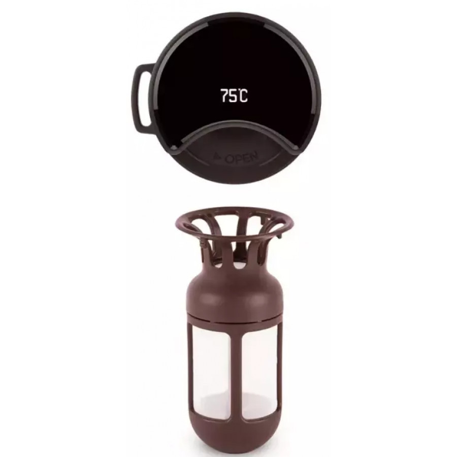 Встроенный термодатчик определяет температуру напитка внутри чашки. Чтобы узнать не остыла ли жидкость, нужно просто перевернуть термос или встряхнуть его